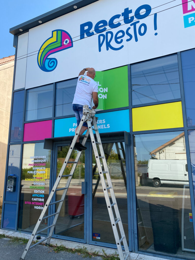 Chez Recto Presto à Louhans, nous réalisons l’ensemble de vos supports de signalétique intérieure et extérieure pour mettre en valeur votre activité et guider efficacement votre public. Que vous soyez une entreprise, une association ou une collectivité, nous adaptons nos solutions à vos objectifs : informer, orienter, sécuriser ou valoriser votre image.